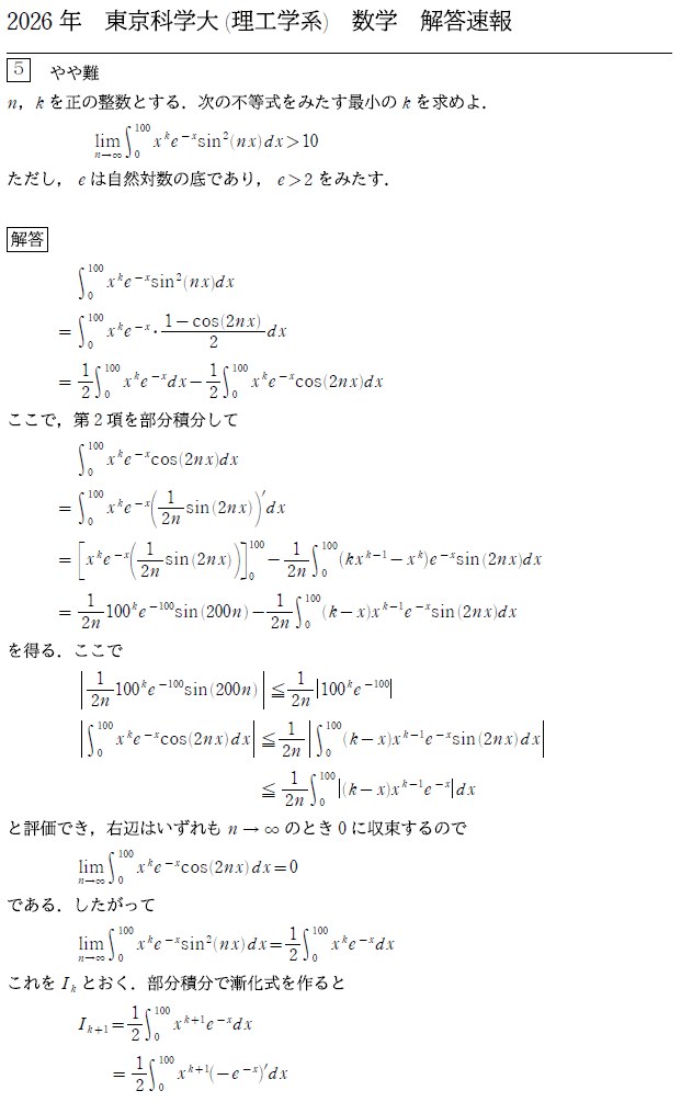 2026年2月25日に実施された東京科学大(理工学系)、旧・東工大の数学の解答速報をお届けします。